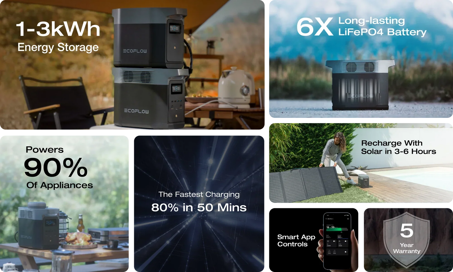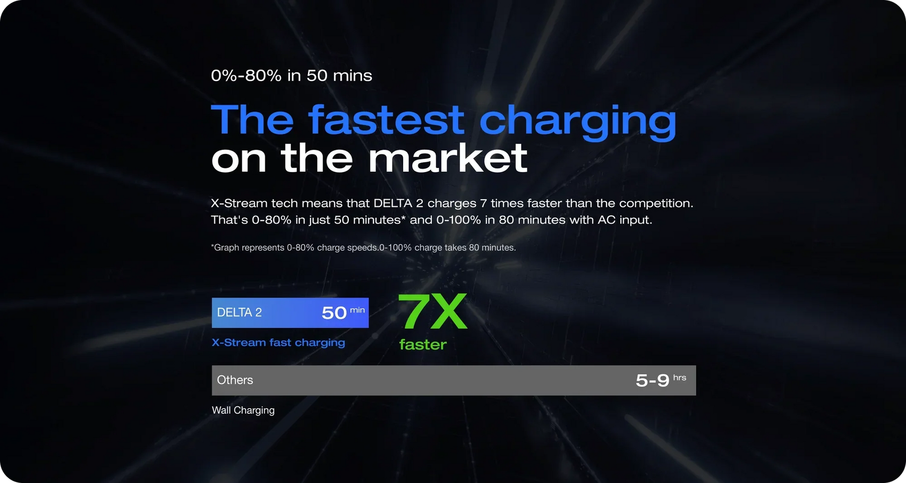 • Huge AC output • 7x Faster AC charging • Go green without sacrificing speed • Built to last 6x longer • Control from anywhere • 5-Year warranty