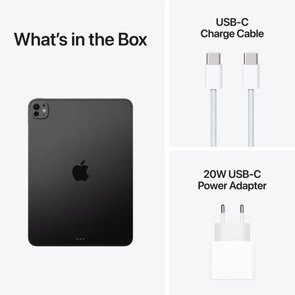 - Included Accessories: iPad Pro, USB-C Charge Cable, 20W USB-C Power Adapter