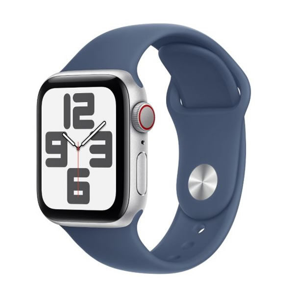 Apple Watch SE GPS + Cellular 44mm Silver Aluminium Case with Denim Sport Band - S/M,Model A2724