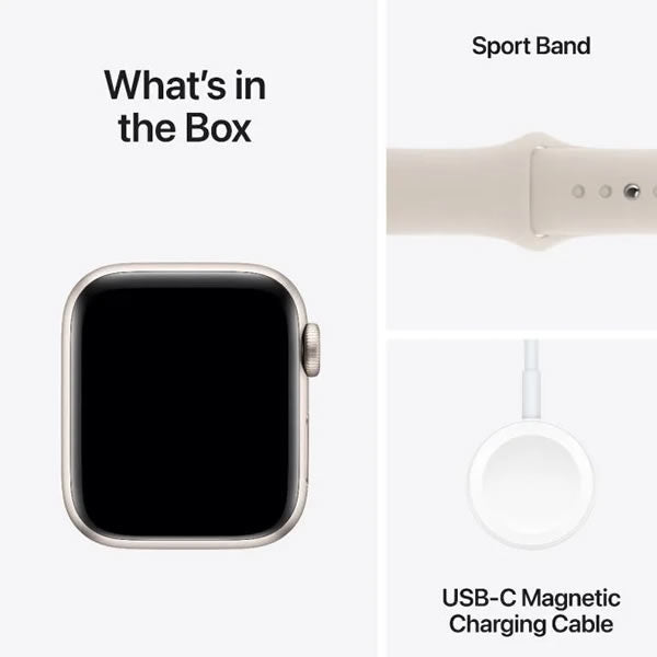 Apple Watch SE GPS + Cellular 44mm Starlight Aluminium Case with Starlight Sport Band - M/L,Model A2724